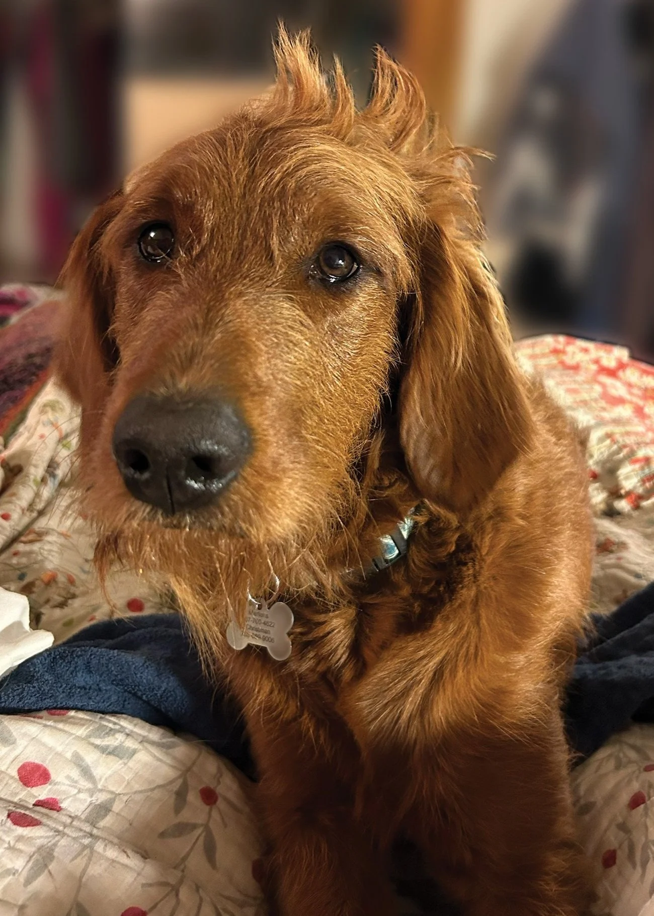 Rusty was supposed to be a foster from Secondhand Pups out of Texas, but he took so long to decompress and adjust to farm life that we decided to keep him. Also, Kodi loves him. He’s the only one she allows to sleep on her bed, so he had to stay. At only a year old, he monitors the perimeter and the rodent situation and is learning about hawks.